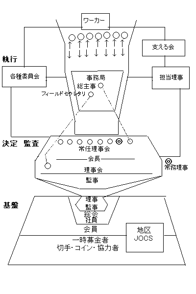 | …などなど。なかなか厳しい結果です。 でも、これを私達準備委員が悲観しているわけではありません。逆に、ごく少数ではありますが、第3回バンコク会議後の事務局の変化や、運営体制の曖昧さや素人っぽさがJOCSの良い点だという評価もありました。 どんな組織にも必ず問題や歪みはあり、歴史が長いほどそれは大きくなるでしょう。理想通りに進んでいる所などありません。逆に「うちは問題がない」という組織の方がコワイです。 今、JOCSでは中から組織改革の声が上がり、大きな問題として取られられていることに私は希望を持っています。さすがJOCS! 「JOCSはだれのために、何をするのか」――それを実現するためには、どんな組織で、どんなマネジメントをすればいいのか。 結局、たどり着くのはいつもここです。変わるべきこと、変わるべきでないことを見極め、具体的な形になるよう動かしていく必要があります。組織改革については、近々理事会でも一つの答えを出すそうです。それをステップに、バンコク会議ではさらに先の話し合いを皆さんに期待していて下さい。 |